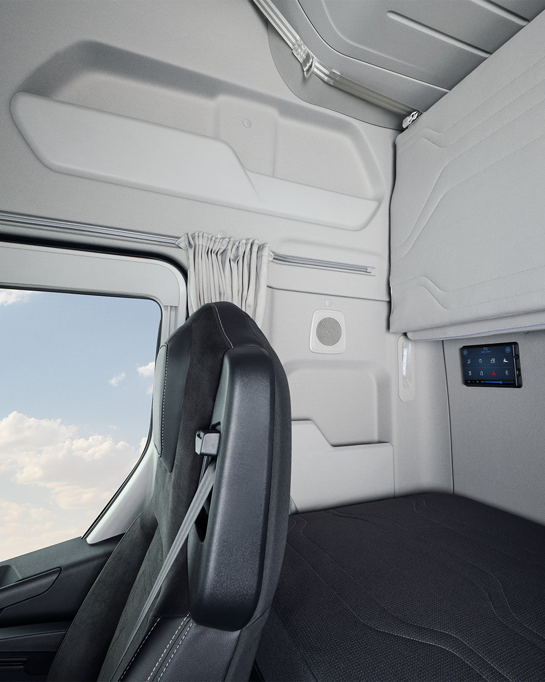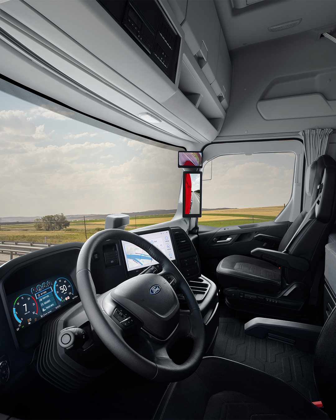 Skutočne high-tech riešením je digitálny systém zrkadiel, ktorý výrazne prispieva k zníženiu odporu vzduchu. Na monitoroch sú zobrazené pomocné línie pre manévrovanie, zatiaľ čo 15-palcový monitor na strane spolujazdca zobrazuje upozornenia systému BLIS sledujúceho mŕtve uhly. Medzi pokročilé funkcie patrí automatické nastavenie zorného poľa podľa pohybu návesu (Auto Pan) a režim „Sentinel“, ktorý počas prestávok dohliada na osoby, vozidlo a palivo, pričom cez systém Connectruck informuje vodiča a flotilového manažéra o zaznamenanej aktivite.