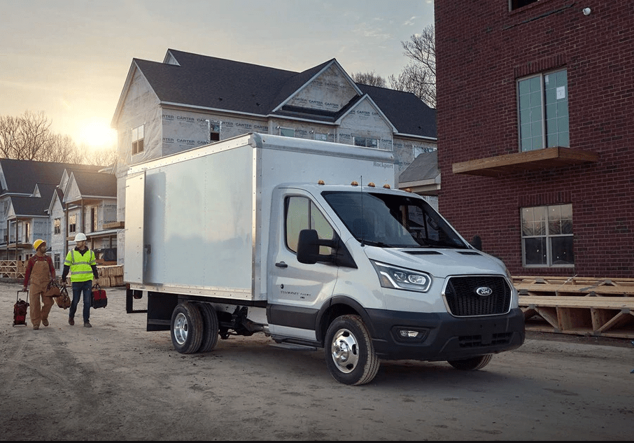 Ľahké nákladné vozidlo Ford Transit má silný podvozok, ktorý uľahčuje jeho premenu na skriňové vozidlo na prepravu tovaru.